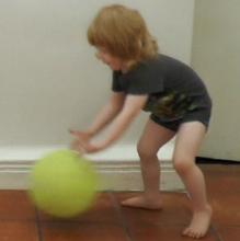 - With global developmental delay, joint hypermobility, low muscle tone, Down syndrome