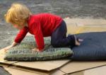 Creating many opportunities for your infant to explore crawling on different surfaces as well as up over and under objects helps to strengthen muscles and train coordination and develop curiosity.