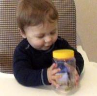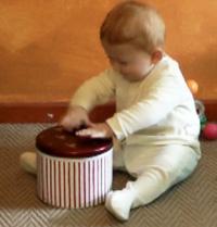 From 9-12 months infants will use their hands to explore interesting objects, and also start to grasp and hold toys placed in their hands.